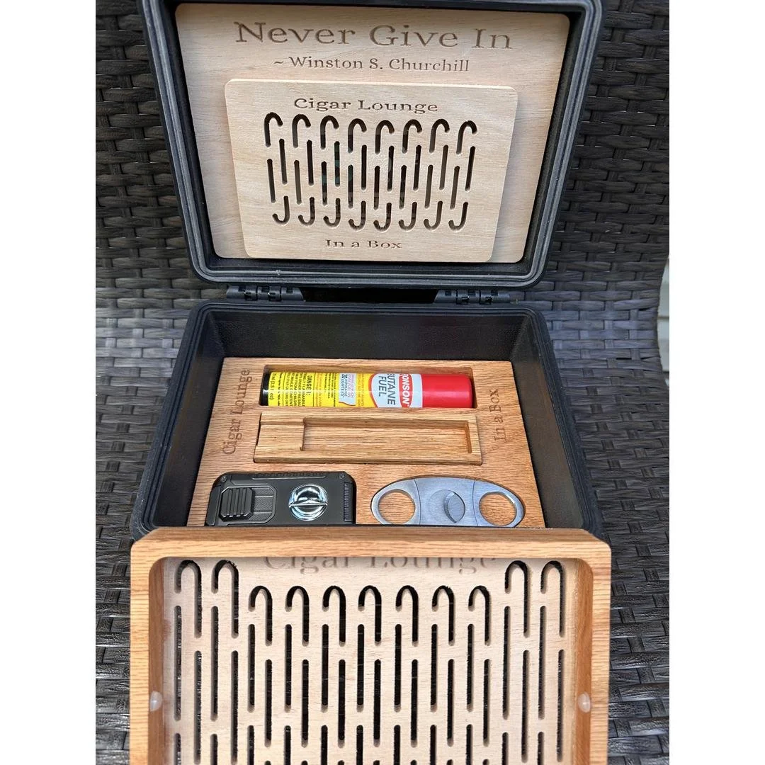 Hand-built with weatherproof durability and Spanish cedar trays, this box keeps 9–12 cigars ready for any moment. From prep to lighting, every detail is designed to elevate your ritual — rugged, reliable, and always smoke-ready.